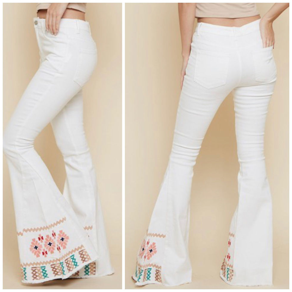 Canyon Rose Leopard Bell Bottoms Jeans - sku 9190